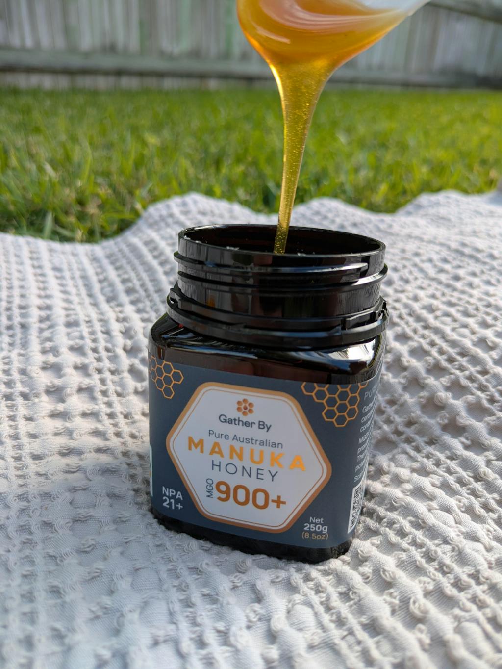 Gather By honey is sourced from healthy honeybees foraging on biodiverse Australian Leptospermum plants, grown in partnership with Australian farmers and Traditional Owners to produce naturally pure, raw and potent Manuka honey.